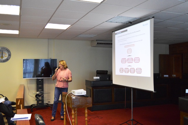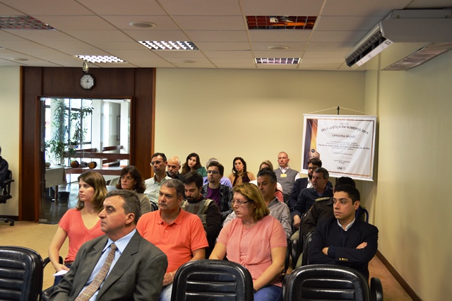 Os servidores do NGE apresentaram, abrindo a exposição, a Resolução 198 do CNJ e os Macrodesafios referentes ao planejamento e à Gestão Estratégica no âmbito do Poder Judiciário para o período 2015-2020.