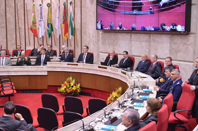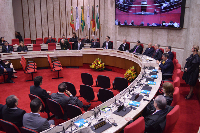 Na última sexta-feira, dia 15 de setembro, o juiz presidente do Tribunal de Justiça Militar Fernando Guerreiro de Lemos representou a justiça militar gaúcha durante a posse do juiz federal Luiz Carlos Canalli como desembargador do Tribunal Regional Federal da 4ª Região. O evento ocorreu no Plenário do TRF4, na capital gaúcha.