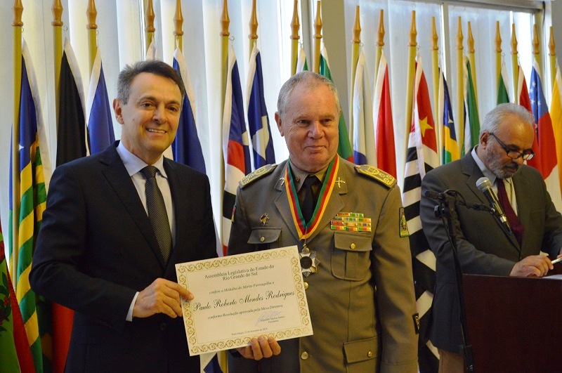 Criada em 1995, a Medalha do Mérito Farroupilha é a mais alta distinção concedida pelo Parlamento gaúcho, destinada a pessoas que manifestamente contribuíram para o desenvolvimento econômico, social e cultural do Estado. A proposição da homenagem foi da iniciativa do Deputado Enio Bacci, reconhecendo os relevantes serviços prestados pelo Cel. Paulo Roberto Mendes Rodrigues no Comando da Brigada Militar e na presidência do TJMRS.