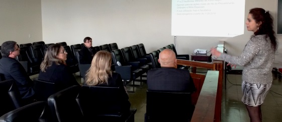 A Juíza titular da Auditoria de Santa Maria e integrante do Comitê Gestor do Processo Judicial Eletrônico no âmbito da Justiça Militar do Rio Grande do Sul. A Magistrada é coordenadora do GT do Primeiro Grau para implantação do PJe, Eliane Soares fez uma explanação sobre o Processo Judicial Eletrônico, repassando informações técnicas sobre o trabalho. A Juíza, que acompanha e trabalha no processo de desenvolvimento e implantação desde o princípio, abordou assuntos relativos às inovações do Código de Processo Civil em face do Processo Judicial Eletrônico. O novo CPC, que entrou em vigor neste ano, segundo ela, possui normas específicas acerca do processo eletrônico, provocando importantes mudanças na Lei 11.419, dentre as quais: cria requisitos para peticionamento, alterando a contagem de prazos processuais, bem como a forma da comunicação eletrônica dos atos processuais. Comunicou, ainda, da disponibilidade do PJE na Auditoria de Passo Fundo, a partir da segunda-feira (27 de junho) para o protocolo de ações cíveis, ressalvando estar em fase de implantação ainda em caráter facultativo. Chamou atenção para o início da obrigatoriedade do uso do sistema nos feitos cíveis, o que ocorrerá a partir de 01 de setembro do corrente ano.