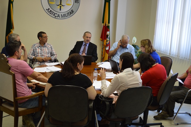 Nesta quinta-feira (10 de dezembro) reuniram-se na sede do TJM, servidores participantes da Rede de Governança Colaborativa da Justiça Militar/RS. Na pauta estava a unificação da inserção de dados no sistema SEGA (TIC). A coordenação do encontro foi do Núcleo de Gestão Estratégica, ao qual está delegada a compilação dos dados e envio mensal, relativo ao procedimento de competência da comissão do CNJ nº 000403508.2015.2.00.0000.
