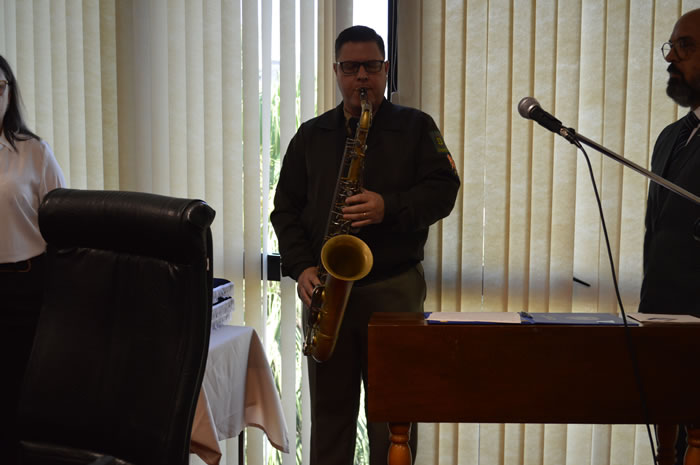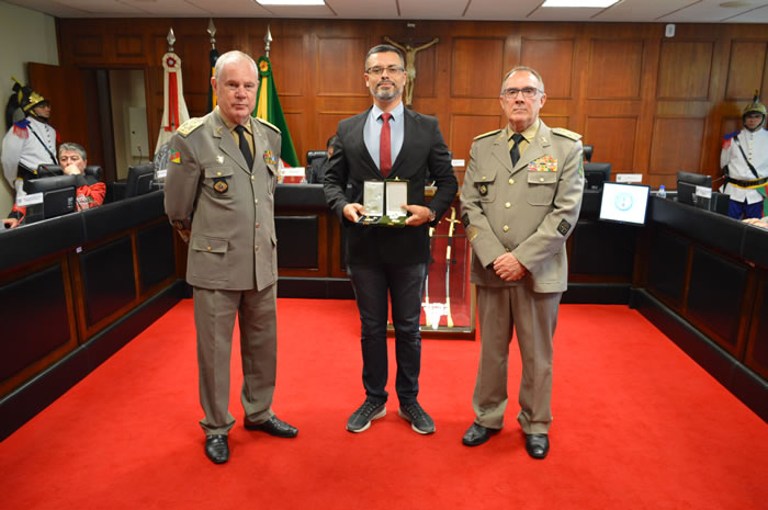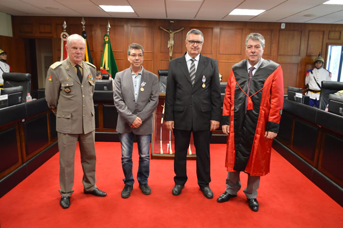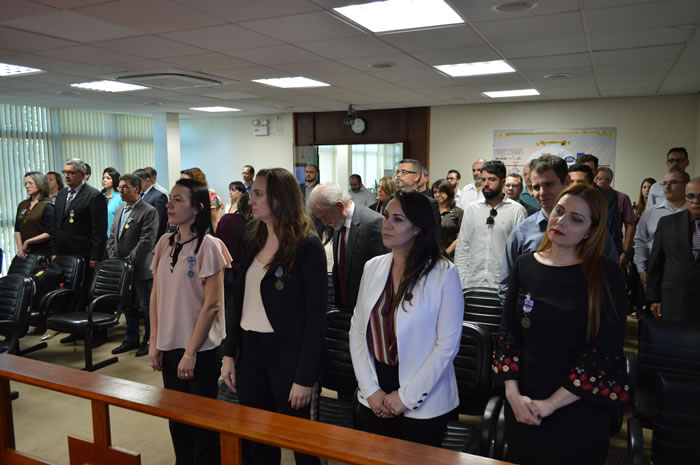 Na oportunidade, como forma de agradecimento, foi agraciado com réplicas das medalhas de Mérito Judiciário Militar do TJM e a Medalha por Tempo de Serviço Categoria Ouro o Sr. Cesar Ataides Figueira Torres, consultor voluntário do TJM, que elaborou o desgin gráfico das medalhas por tempo de serviço e refez a heráldica da medalha de mérito judiciário militar do TJM.