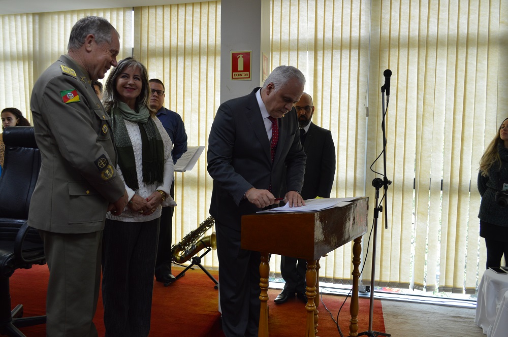 Ato contínuo foi realizada a assinatura do Convênio entre a ESA e o TJM/RS, momento em que o juiz militar presidente, Paulo Roberto Mendes Rodrigues, o presidente da OAB/RS, Dr. Ricardo Breier, e a diretora da ESA, Dra. Rosângela Herzer, assinaram o referido convênio.