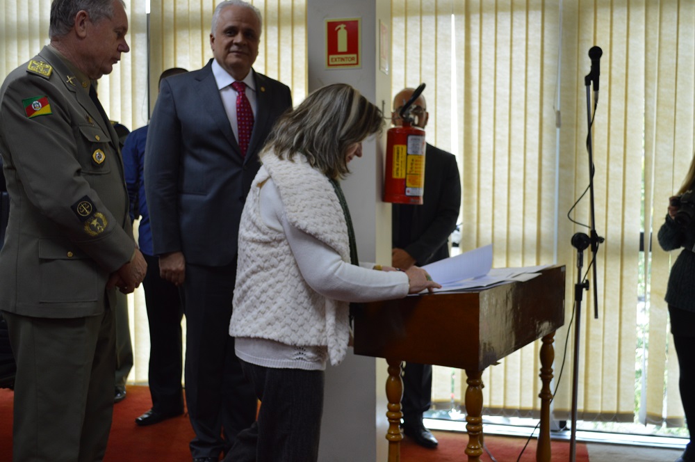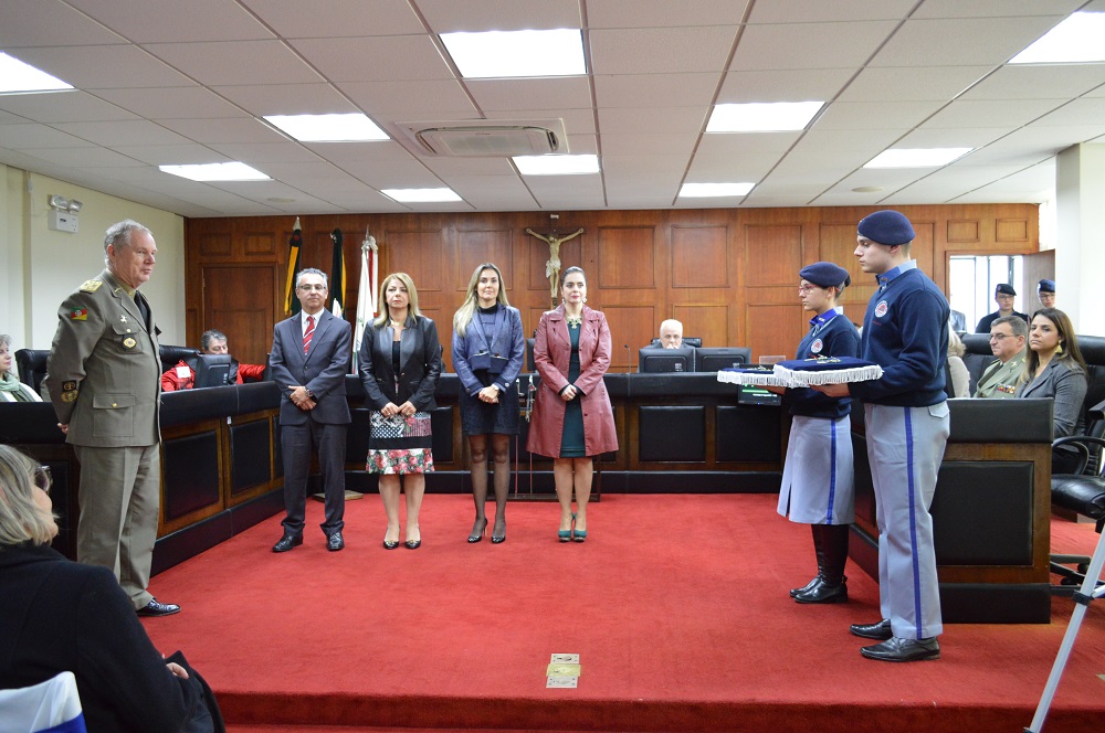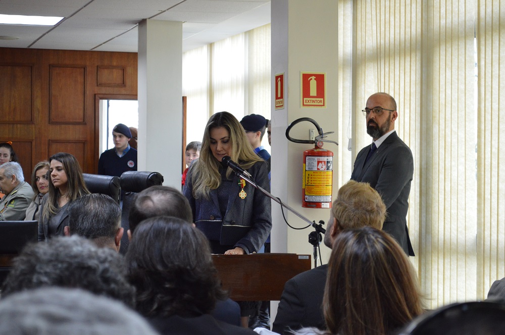 A Exma. juíza substituta da Primeira Auditoria, Karina Dibi Kruel do Nascimento, fez o uso da palavra em nome dos agraciados, oportunidade que manifestou gratidão pela honraria concedida.
