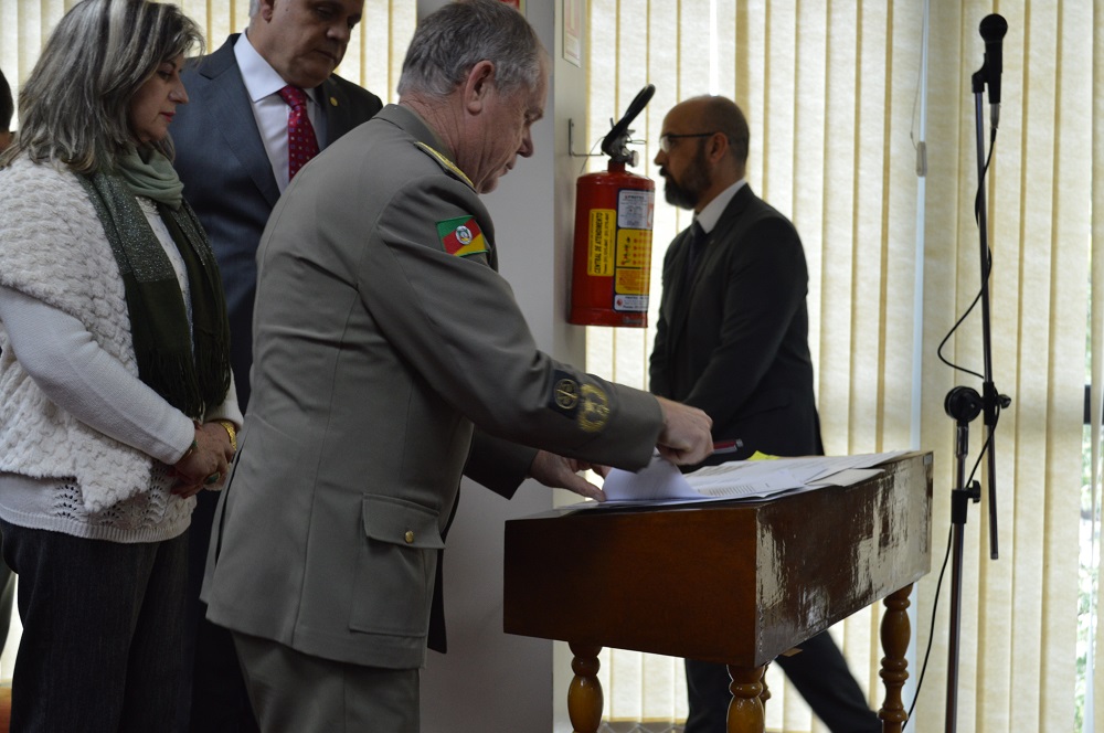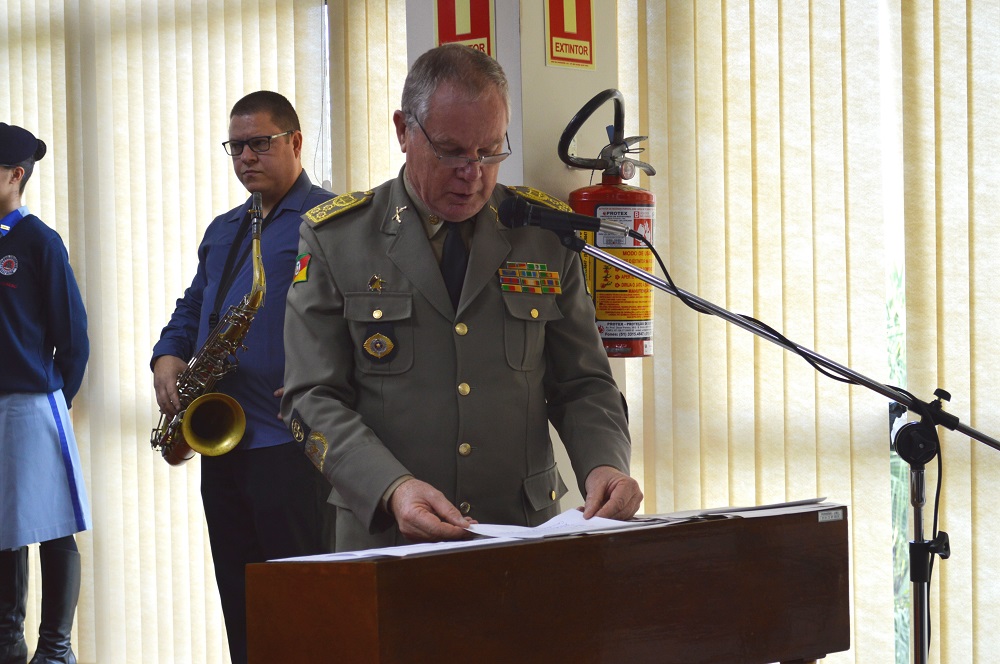 Ao término, foi executado o Hino do Rio Grande do Sul, através do Sgt. Carlos Roberto Teixeira Kettz.