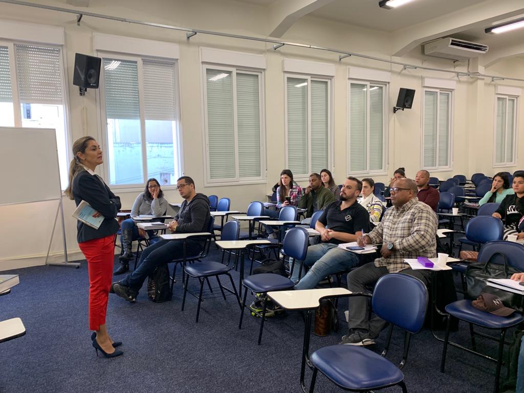 A Dra. Karina Dibi Kruel do Nascimento, Juiza Substituta da 1ª Auditoria Militar de Porto Alegre, proferiu a aula final junto as dependências da Faculdade.