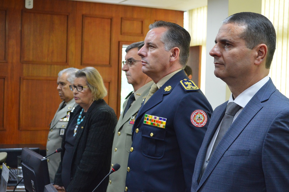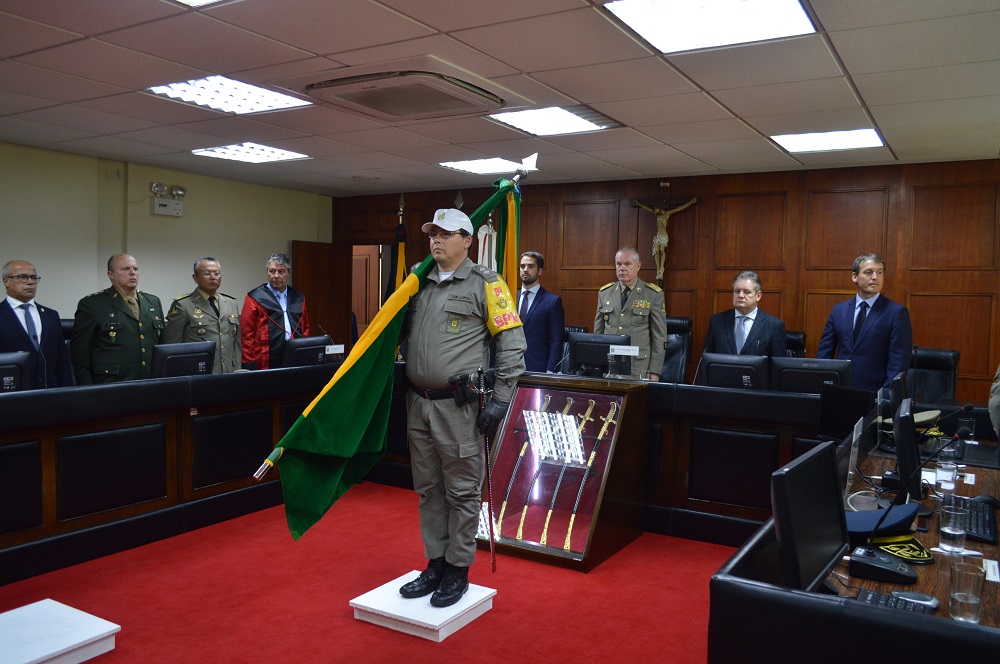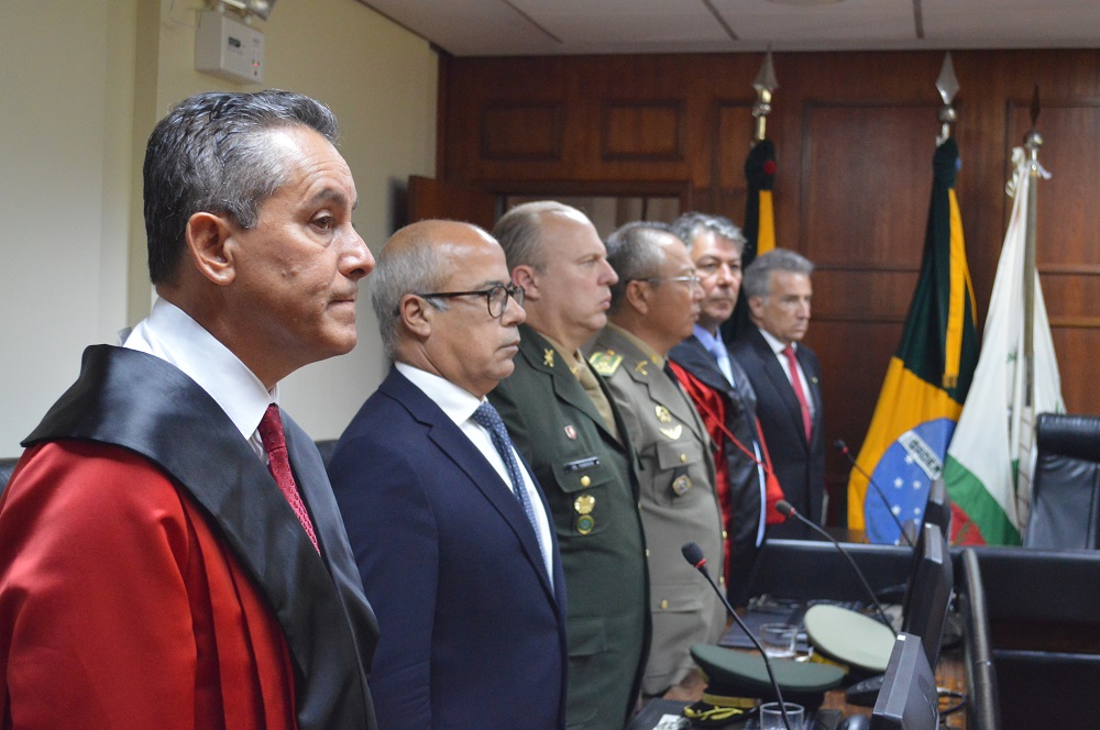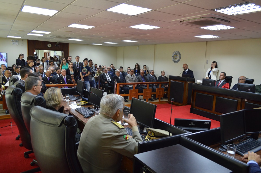 De início, o Mestre de Cerimônias, Felix Alexandre Grivot Neto, realizou as introduções necessárias, sendo seguido pela abertura oficial da sessão solene, proclamada pelo Presidente do Tribunal de Justiça Militar do Estado (TJMRS), Juiz Militar Paulo Roberto Mendes Rodrigues, oportunidade em que foi executado o Hino Nacional, em peça solo, pelo Sgt. Carlos Roberto Teixeira Kettz.