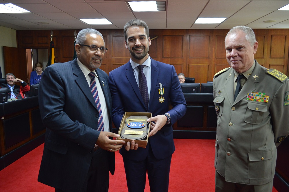 Logo após a entrega da homenagem prestada pelo TJM, a bandeira foi deslocada do local de destaque, e as instituições: AsOfBM, AOFERGS, ASSTBM, ABAMF, ABERGS, Fundação BM, Correio Brigadiano, MBM e IBCM homenagearam o Governador do Estado com entregas de placas comemorativas institucionais.