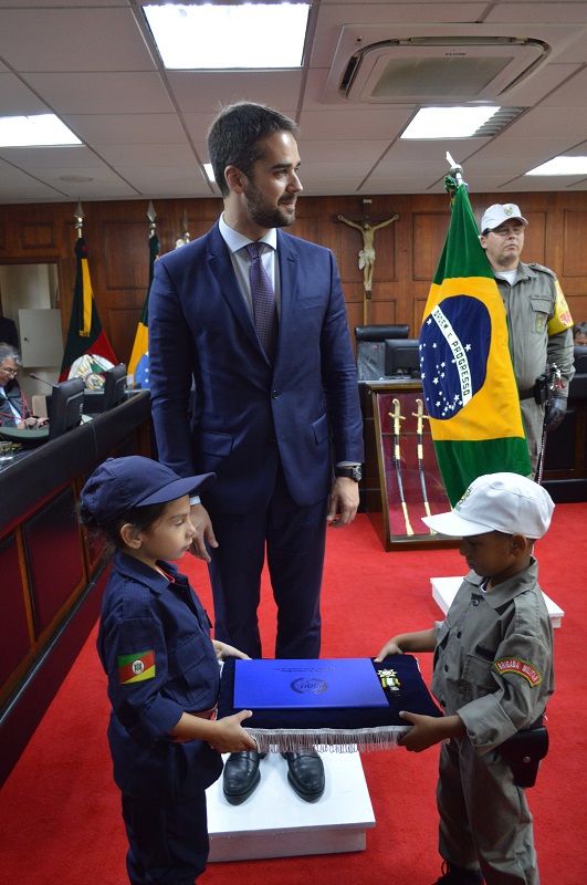Ao início do ato de entrega da homenagem, o Mestre de Cerimônias, após fazer a leitura da Ata de Concessão, que viabilizou a entrega da referida medalha, convidou o Presidente do TJM, Juiz Militar Paulo Roberto Mendes Rodrigues, o 3º Vice-Presidente do TJRS, Des. Túlio Martins, e o homenageado para se deslocarem ao local de destaque, acompanhados pelos alunos da Escola Tio Chico da Brigada Militar, que auxiliaram na condução da medalha ao local de destaque, sendo entregue ao governador a medalha pelo Presidente do TJM e o respectivo diploma pelo 3º Vice-Presidente do TJRS.