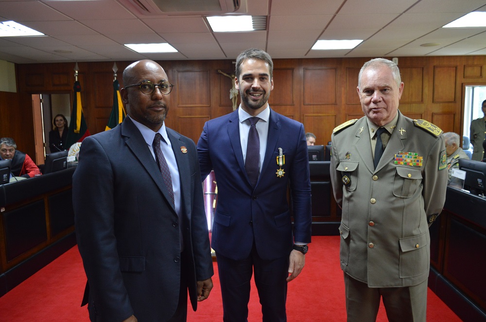 TJM presta homenagem ao Governador do Estado, Dr Eduardo Leite, com a entrega da medalha de Mérito Judiciário Militar