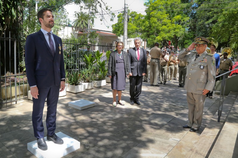 O TJMRS recepcionou, com honras militares, ao som do clarim e da Banda de Música da Brigada Militar, na respectiva ordem: os Comandantes do Corpo de Bombeiros Militar e da Brigada Militar, e o homenageado, Eduardo Leite.