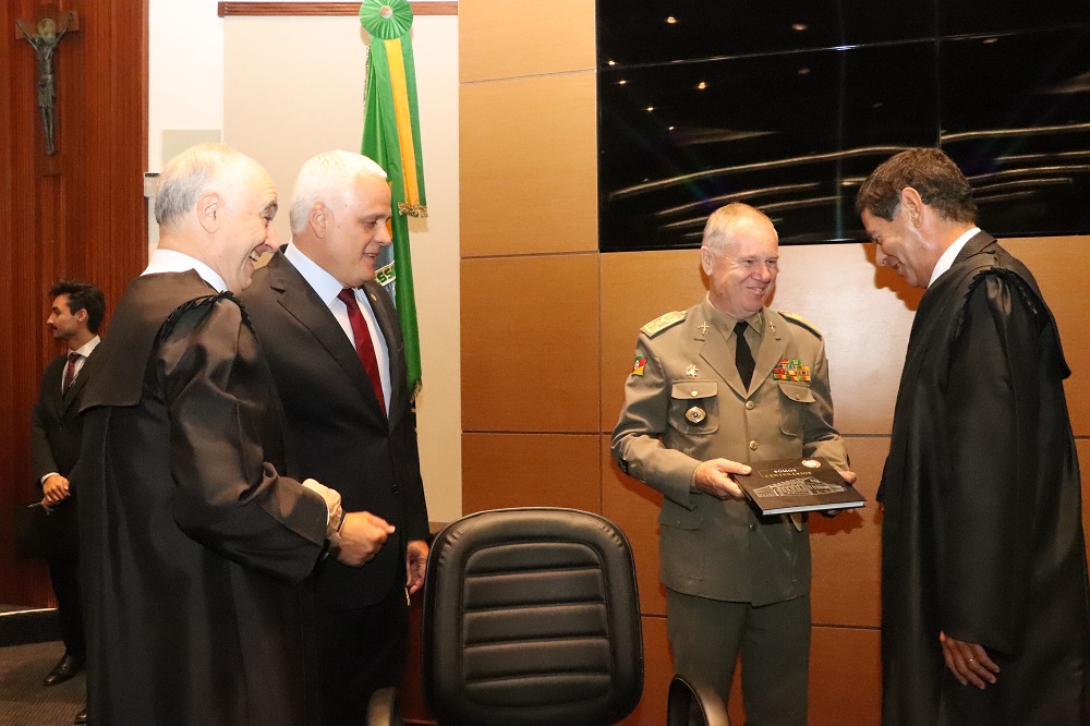 Após a solenidade o o Juiz Militar entregou ao Presidente do TJ, Desembargador Carlos Eduardo Zietlow Duro, um exemplar do Livro Institucional do Centenário do Tribunal Militar "Somos centenários".