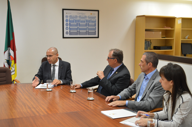 O juiz militar Sergio Antonio Berni de Brum, representando o TJM-RS, se reuniu com os juízes–corregedores do TJ-RS Vanderlei Deolindo e André Luís de Aguiar Tesheiner, na manhã de hoje (16), no Palácio da Justiça, em Porto Alegre. O tema do encontro foi a viabilização de um convênio para a utilização de equipamento de videoconferências da justiça comum para oitivas de testemunhas em audiências da justiça militar e para superar as demandas de cartas precatórias.