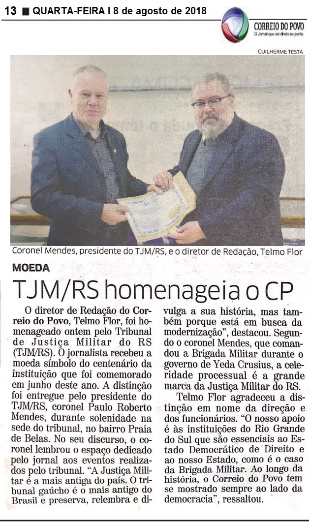 TJM/RS homenageia o Correio do Povo