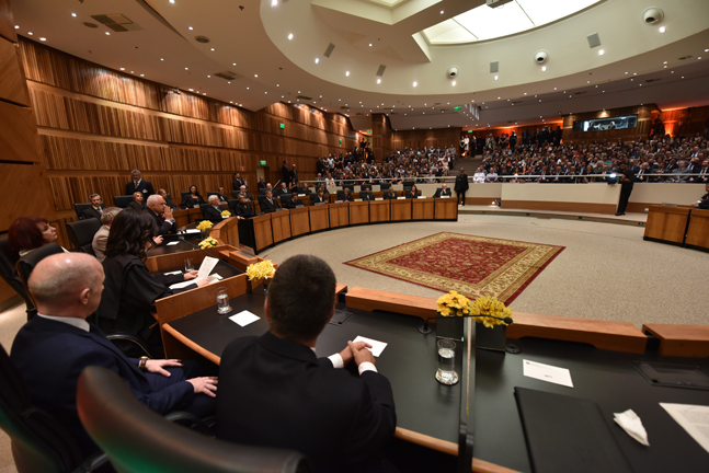 O juiz-vice-presidente do Tribunal de Justiça Militar do RS, Fabio Duarte Fernandes, representou a justiça castrense na solenidade de posse ocorrida na sexta-feira (15 de dezembro), em Porto Alegre. Foram empossados os membros responsáveis pela gestão do Tribunal Regional do Trabalho da 4ª região durante o biênio 2018-2019. Formam a nova administração os desembargadores Vania Cunha Mattos (presidente), Ricardo Carvalho Fraga (vice-presidente), Marçal Henri dos Santos Figueiredo (corregedor regional).
