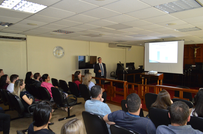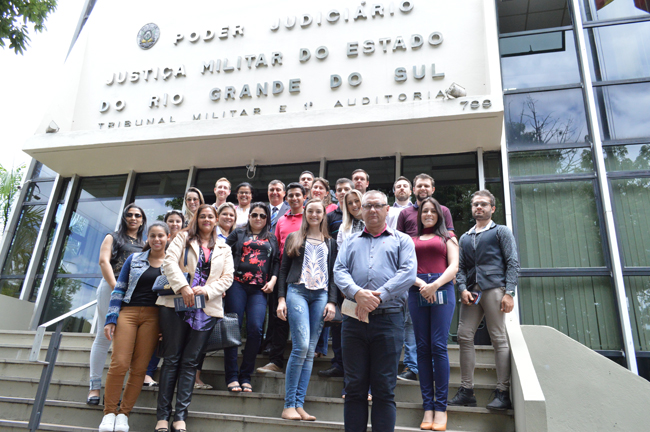 Os estudantes do 8º semestre do curso de Direito da Universidade de Santa Cruz do Sul (Unisc) visitaram o Tribunal de Justiça Militar gaúcho (TJM/RS), na tarde desta sexta-feira (01). A turma foi recepcionada pelo juiz militar vice-presidente do TJM/RS, Fabio Duarte Fernandes, que palestrou aos futuros operadores do direito, no plenário da Corte castrense.