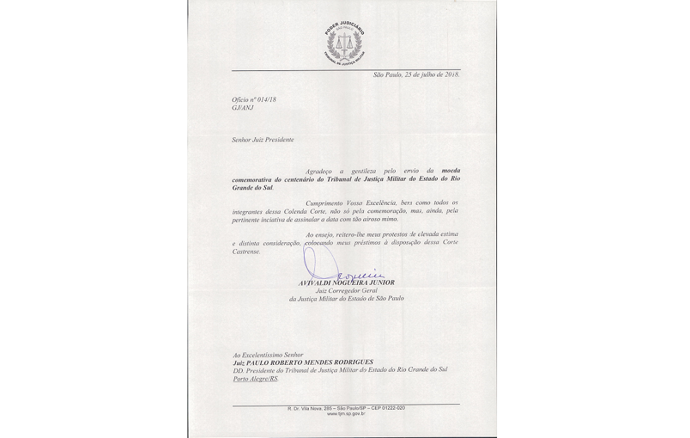 TJM/SP parabeniza a Corte Castrense gaúcha pelo seu centenário