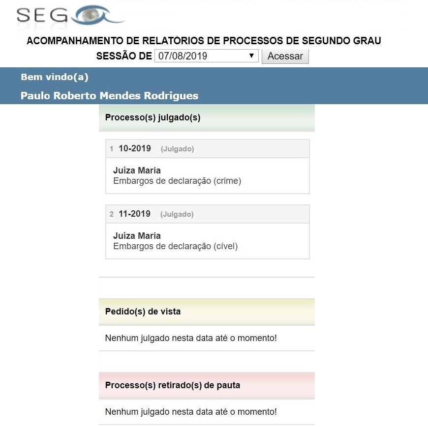 Faço saber que, em 08.08.2019, o TJMRS julgou os dois últimos processos físicos e, assim a administração desativou o aplicativo “Sesplenário” que fazia a gestão dos processos físicos pautados para as sessões de julgamento, consoante publicação no Diário da Justiça Eletrônico (DJE) Nº 6.566 - disponibilizado no dia 14 de Agosto de 2019.