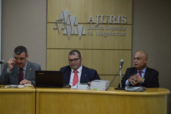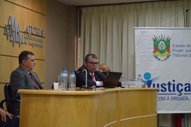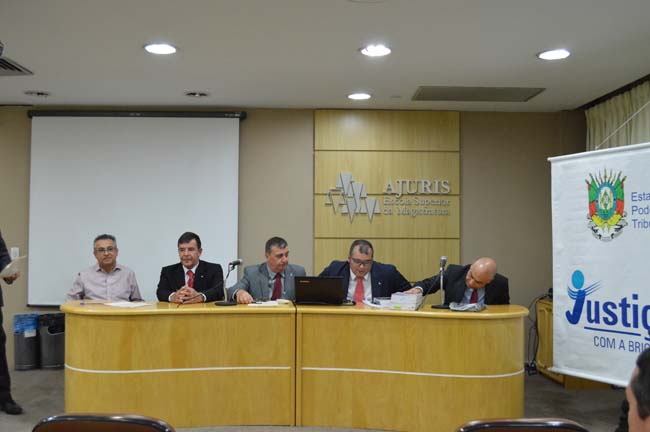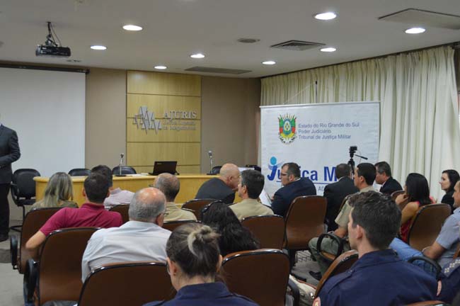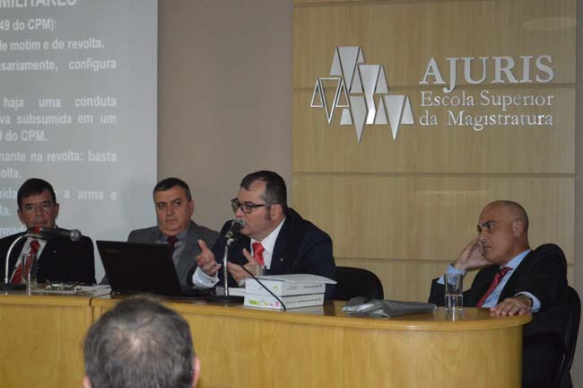 O Núcleo de Estudos em Direito Militar é uma parceria entre o Tribunal de Justiça Militar do Estado e a Escola da Magistratura da Associação dos Juízes do Rio Grande do Sul. O quinto encontro foi coordenado pelo Juiz Vice-Presidente do Tribunal de Justiça Militar gaúcho Fábio Duarte Fernandes, tendo comparecido os magistrados do TJM/RS Juízes Amilcar Fagundes Freitas Macedo (corregedor geral da JME RS) e Sergio Antonio Berni de Brum. Do primeiro grau de jurisdição da JME participaram o Juiz Francisco José de Moura Muller e as Juizas Eliane Almeida Soares, Dione Dorneles Silva e Karina Dibi Kruel do Nascimento. Estiveram presentes, também, os Juizes Auditores da Justiça Militar da União Alcides Alcaraz Gomes, Natascha Maldonado Severo e Wendell Petrachim Araújo, o Promotor de Justiça Luiz Eduardo Azevedo (representando o Procurador Geral de Justiça do Estado) e o Corregedor Geral da Brigada Militar, tenente-coronel Régis Rocha da Rosa.