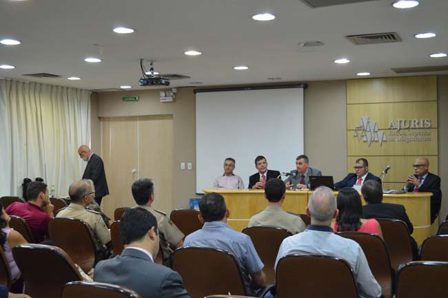 Reflexões sobre eventuais movimentos de indisciplina na polícia militar brasileira, crimes militares, repressão disciplinar e anistia marcaram a palestra do promotor Cícero Robson Coimbra Neves, nesta última sexta-feira (31 de março), no auditório da Escola Superio da Magistratura da AJURIS, na Capital. O evento de retomada dos encontros do Núcleo de Estudos em Direito Militar, promovido pela AJURIS e pela Justiça Militar do Estado, contou com a presença de magistrados, advogados e policiais militares. Com duração de duas horas, o encontro fomentou debates e discussões de ideias entre os presentes, reafirmando o sucesso do evento.
