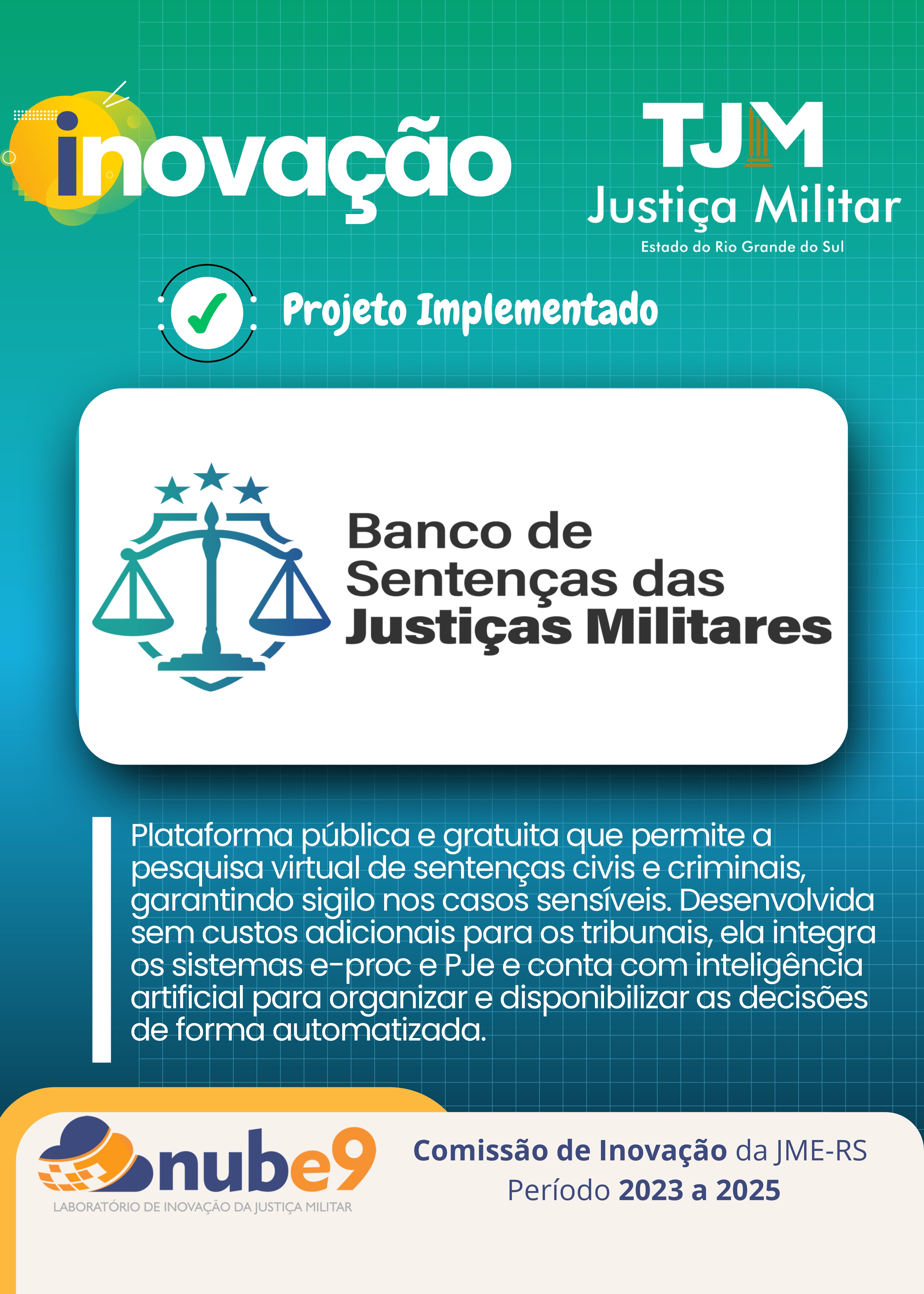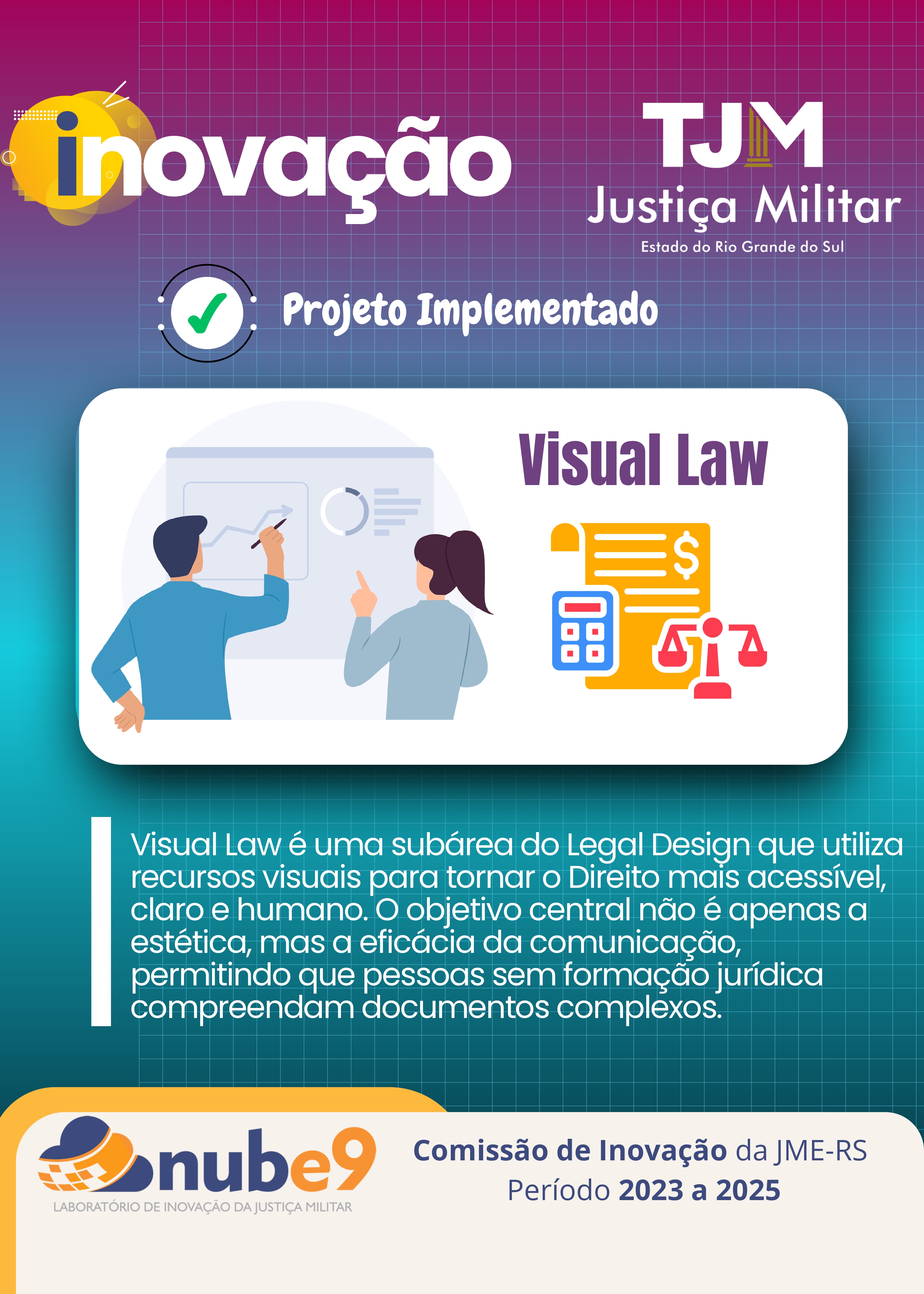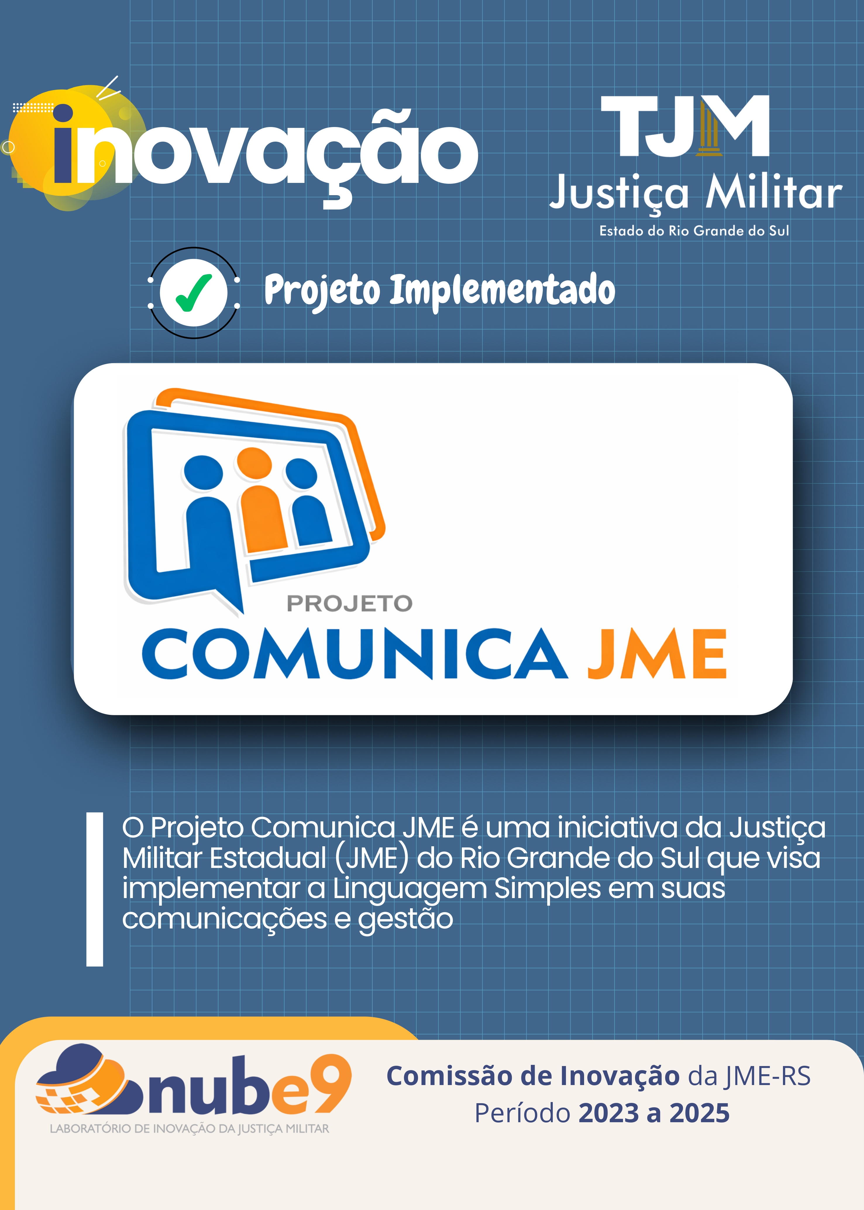 O banner do planejamento estratégico, por exemplo, traz os elementos constantes das metas da JME que tem como princípio proporcionar uma melhor gestão de servidores e um atendimento cada vez mais qualificado aos jurisdicionados, assegurando à sociedade em geral a possibilidade de acesso virtual a todas as informações provenientes da JME.